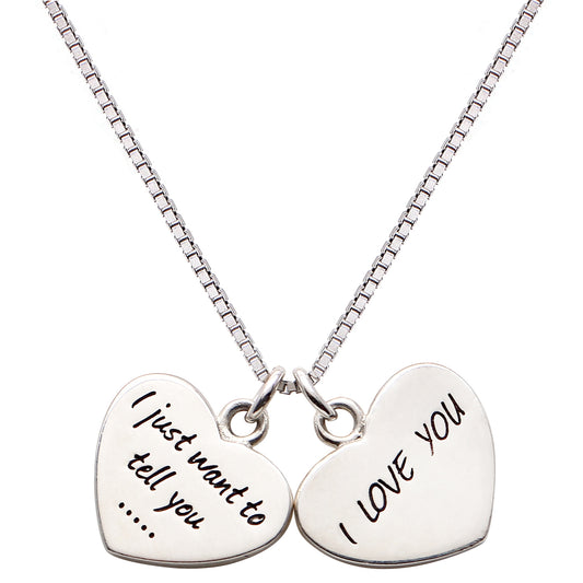 Alov Sterling Silver I just want to tell you... I love you Double Hearts Necklace, 45cm