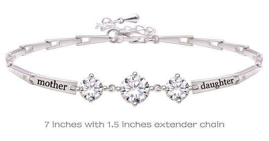 ALOV Jewelry Sterling Silver "mother daughter" Cubic Zirconia Bracelet