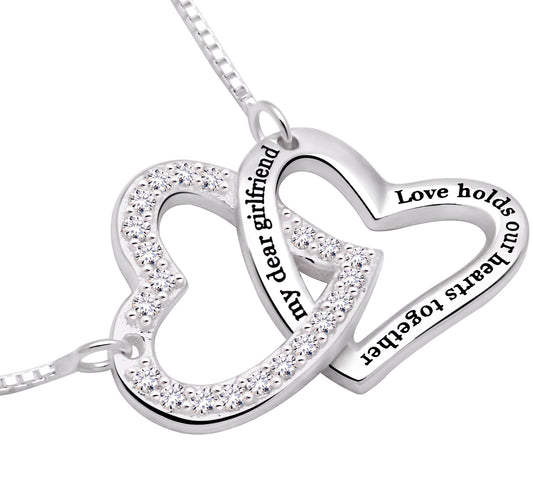 ALOV Sterling Silver "my dear girlfriend love holds our hearts together" Love Heart Cubic Zirconia Pendant Necklace