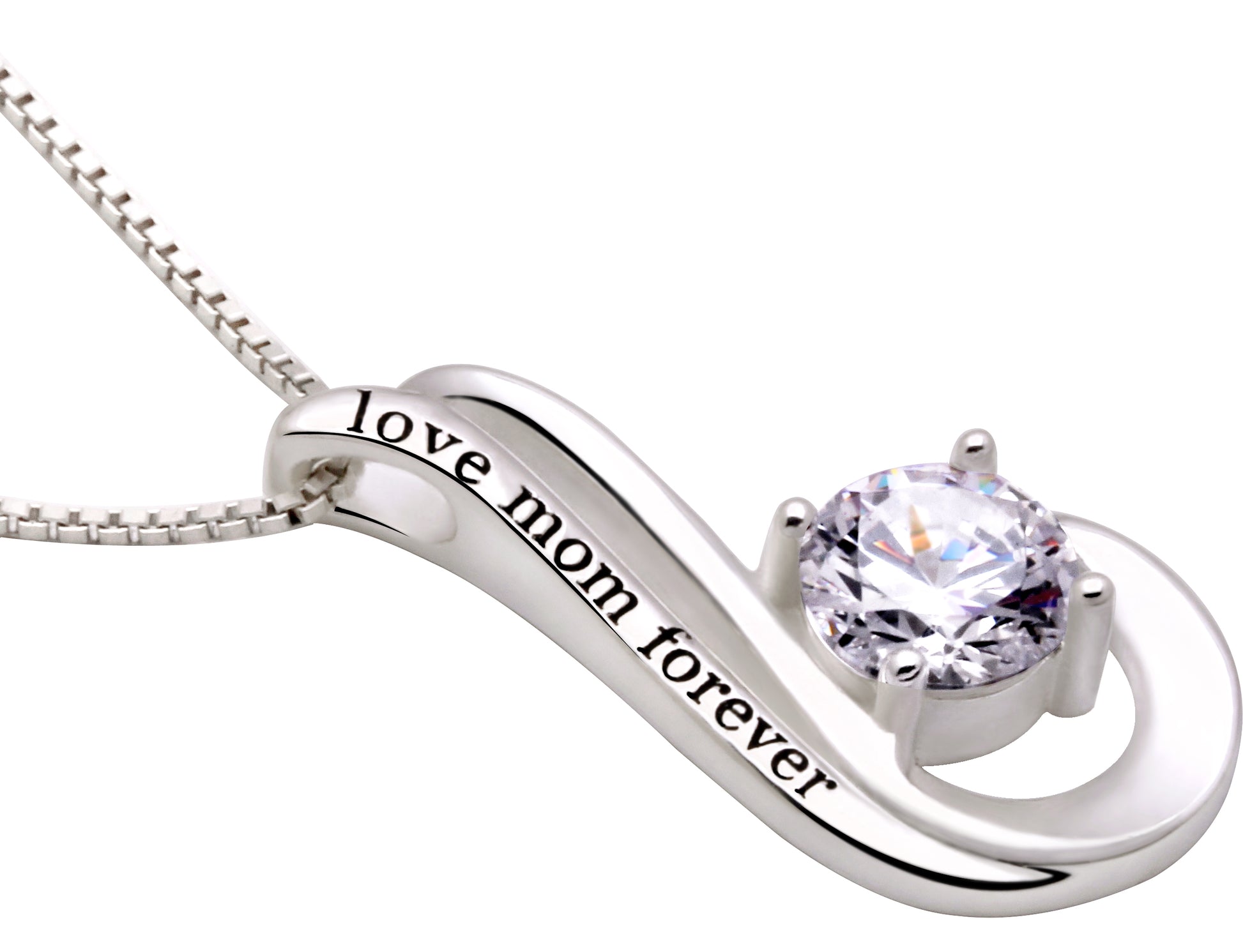 ALOV Jewelry Halskette mit Anhänger „Love Mom Forever“ aus Sterlingsilber mit Engelsflügel