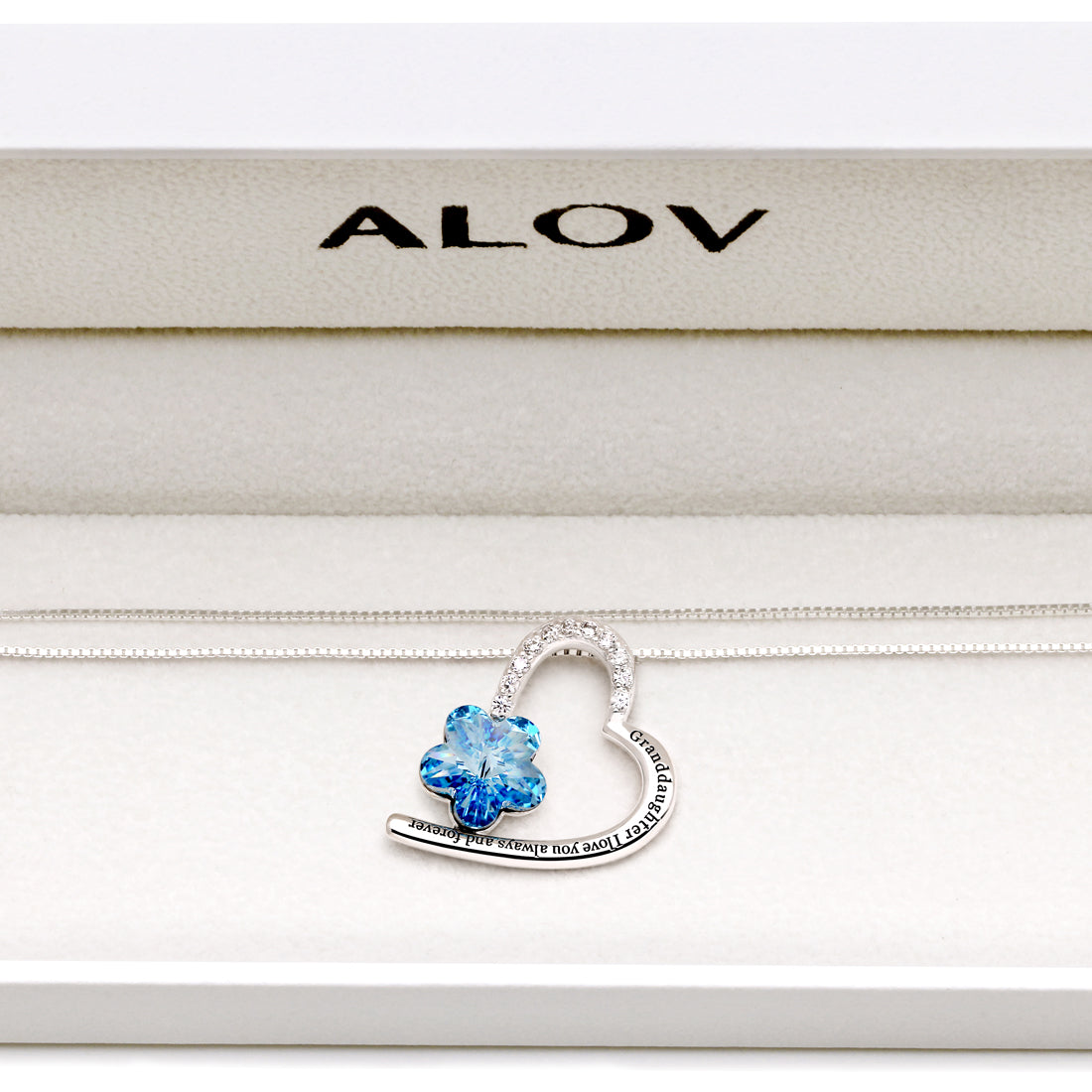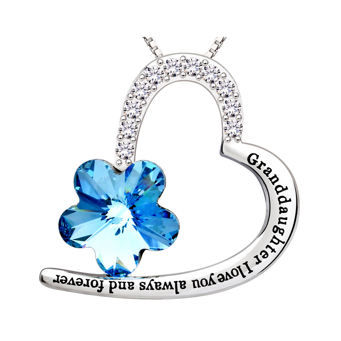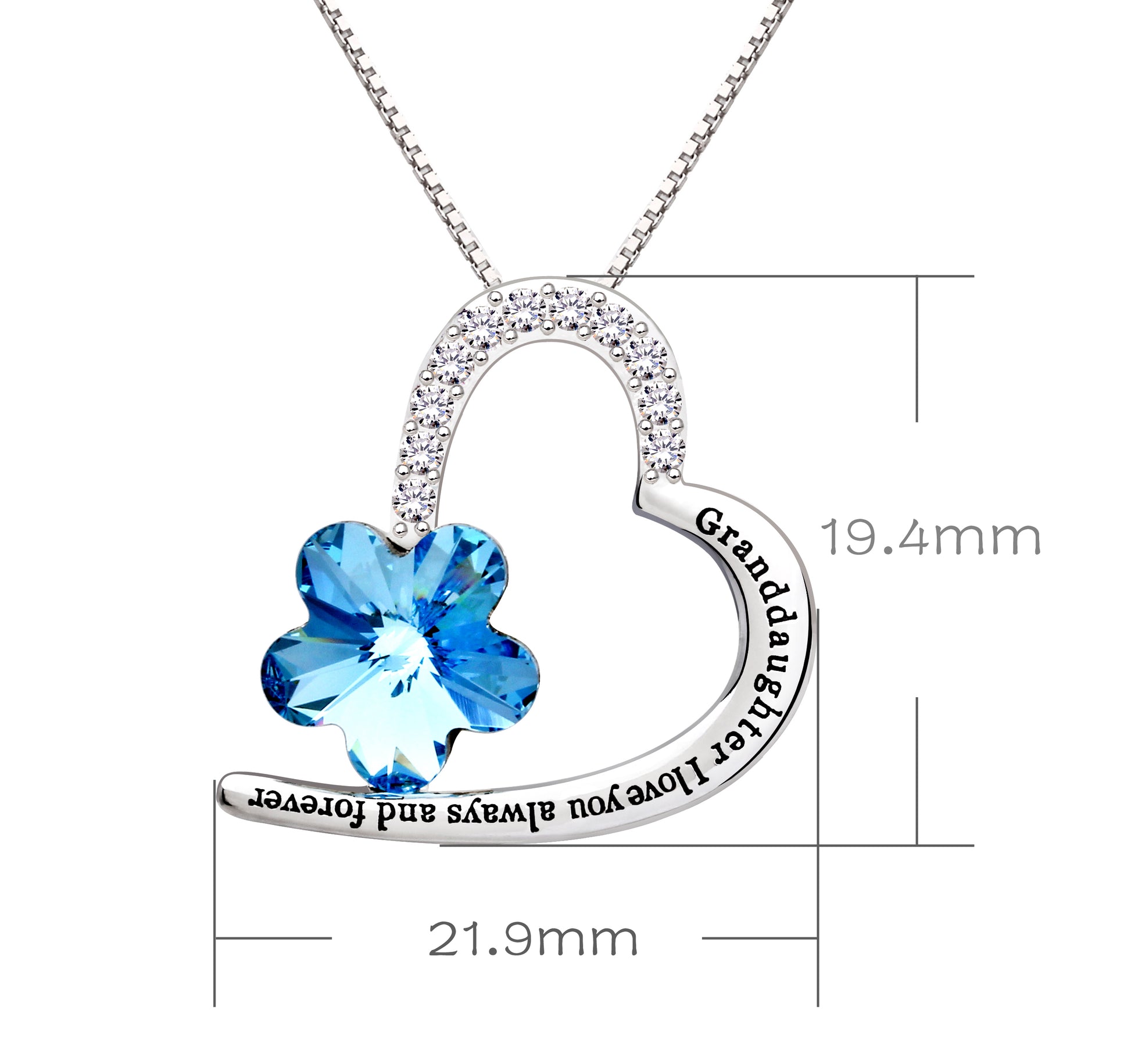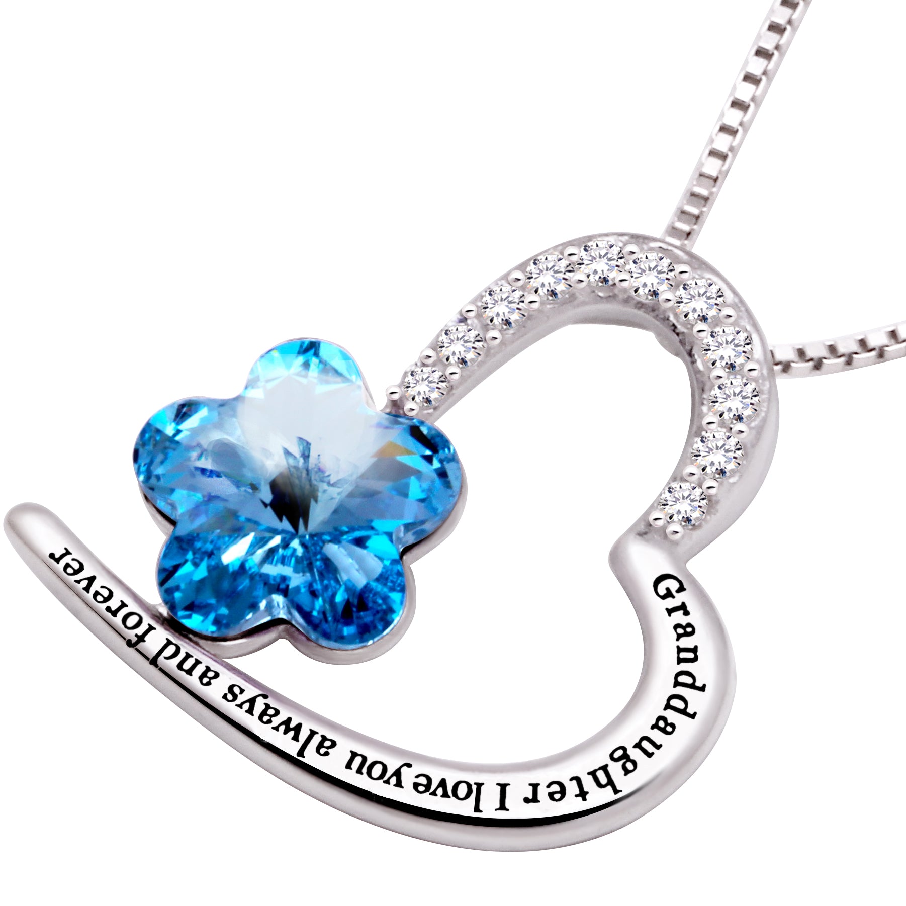 ALOV Jewelry Sterlingsilber-Halskette mit Anhänger „Enkelin, ich liebe dich immer und für immer“, Liebesherz, blauer Kristall und Zirkonia