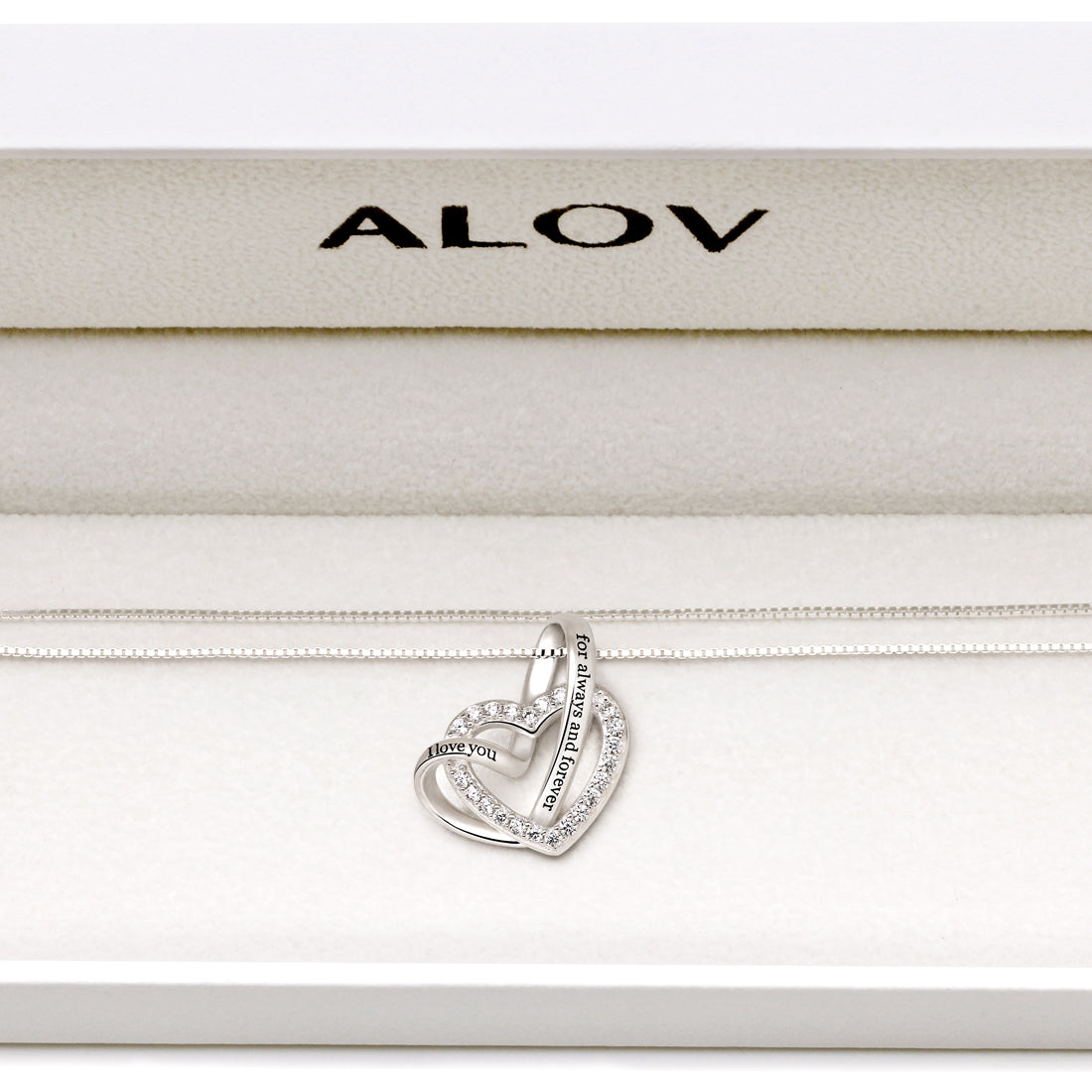 ALOV Jewelry Sterlingsilber-Halskette „Ich liebe dich für immer und ewig“ mit Liebesherz und kubischem Zirkonia