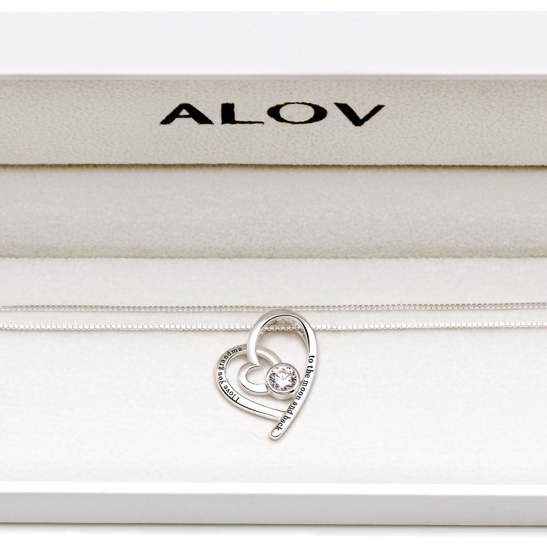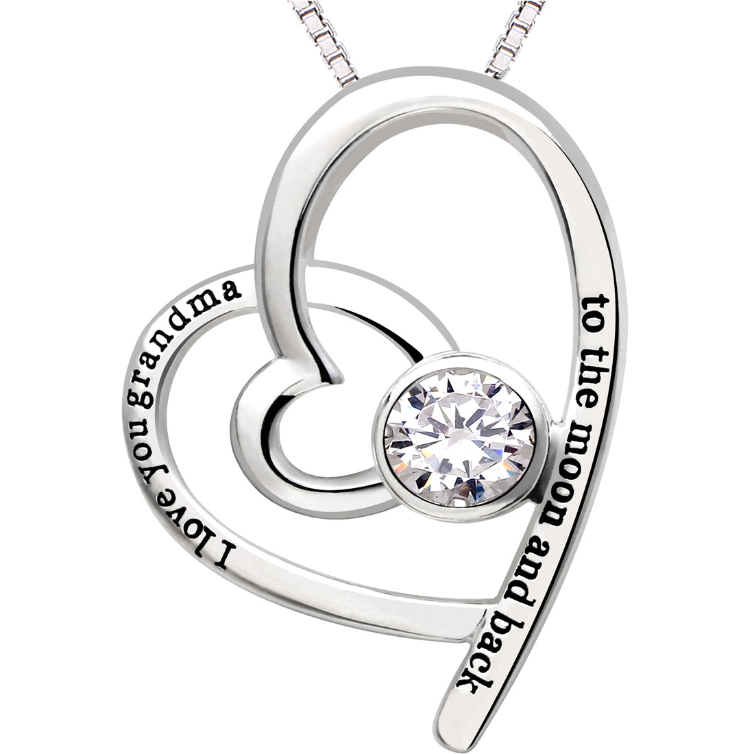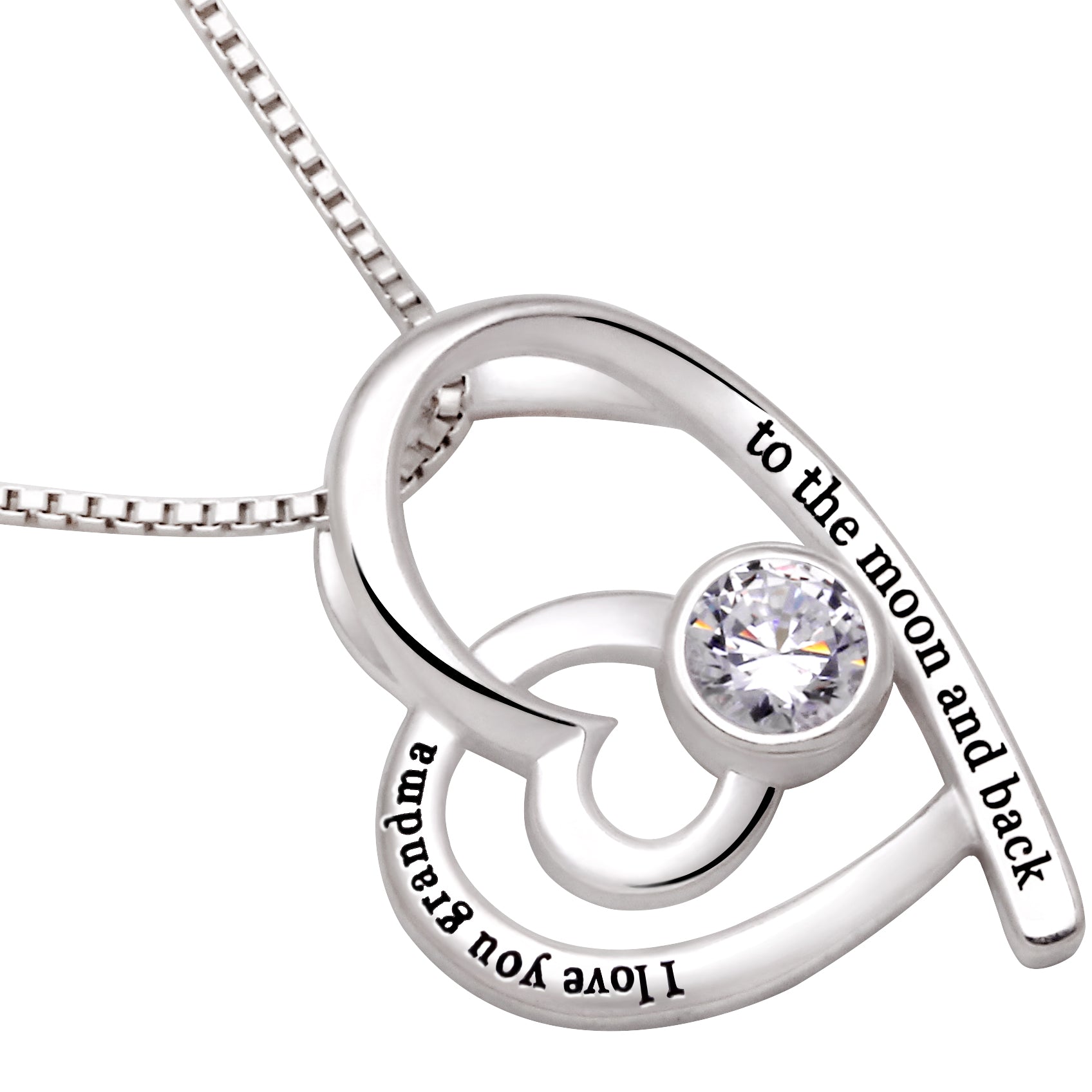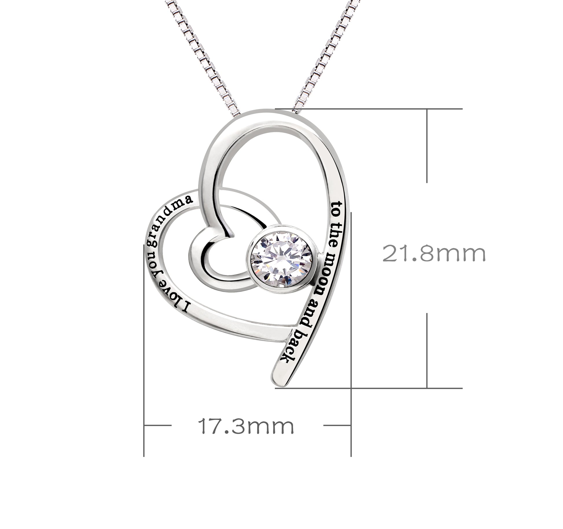ALOV Jewelry Sterlingsilber-Halskette mit Anhänger „Ich liebe dich, Oma bis zum Mond und zurück“ mit Liebesherz und kubischem Zirkonia