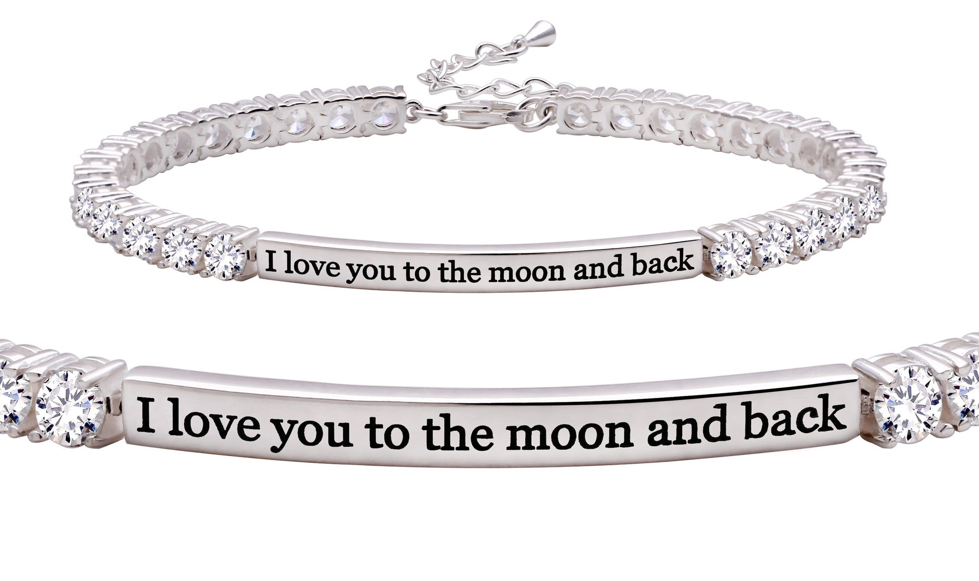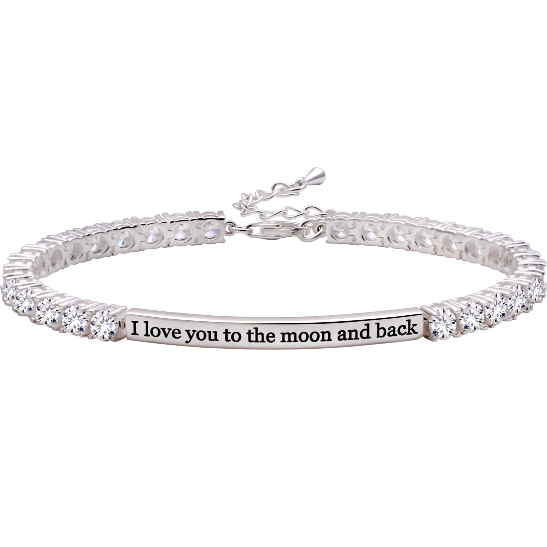 ALOV Jewelry Tennisarmband aus Sterlingsilber mit der Aufschrift „I love you to the moon and back“, 4 mm, Zirkonia