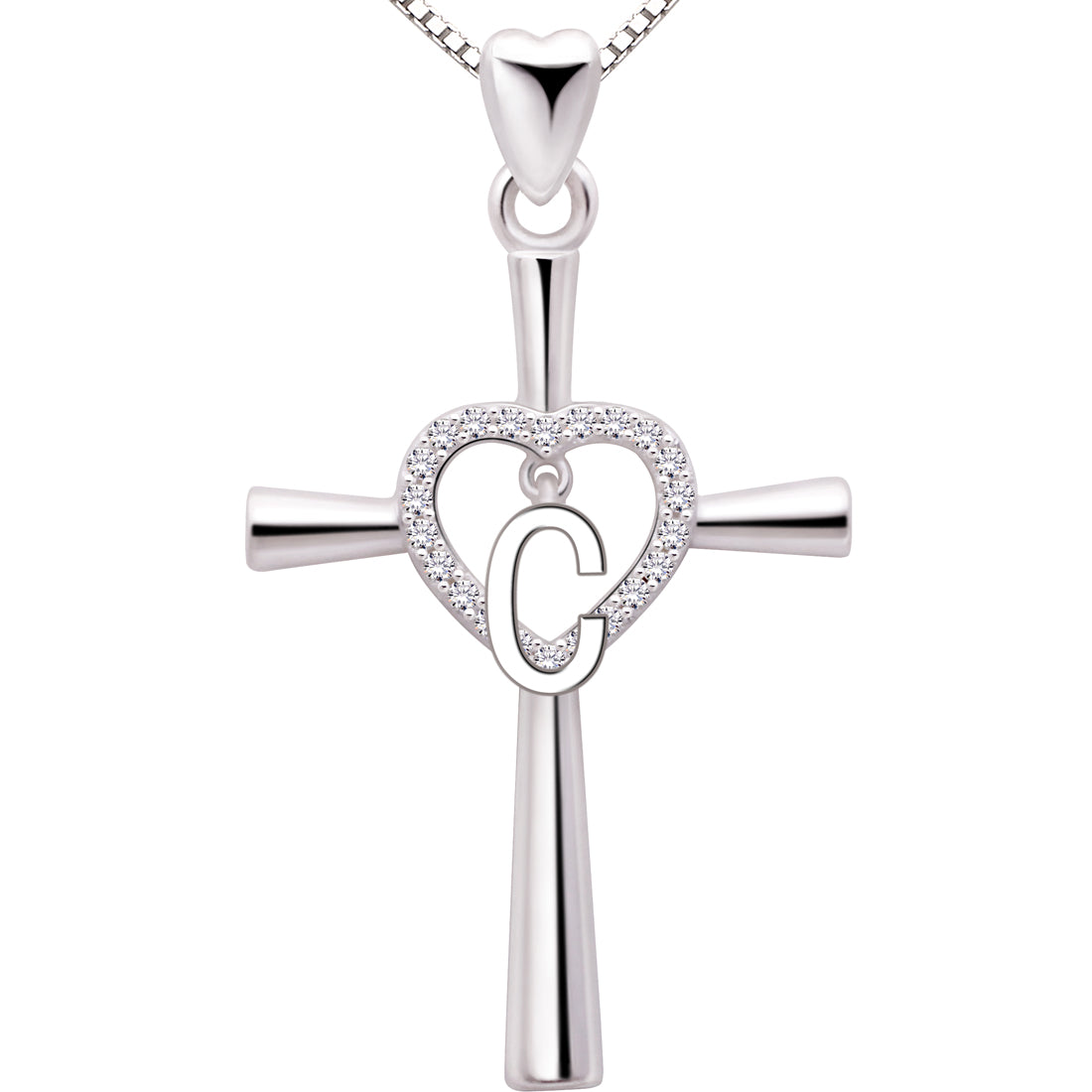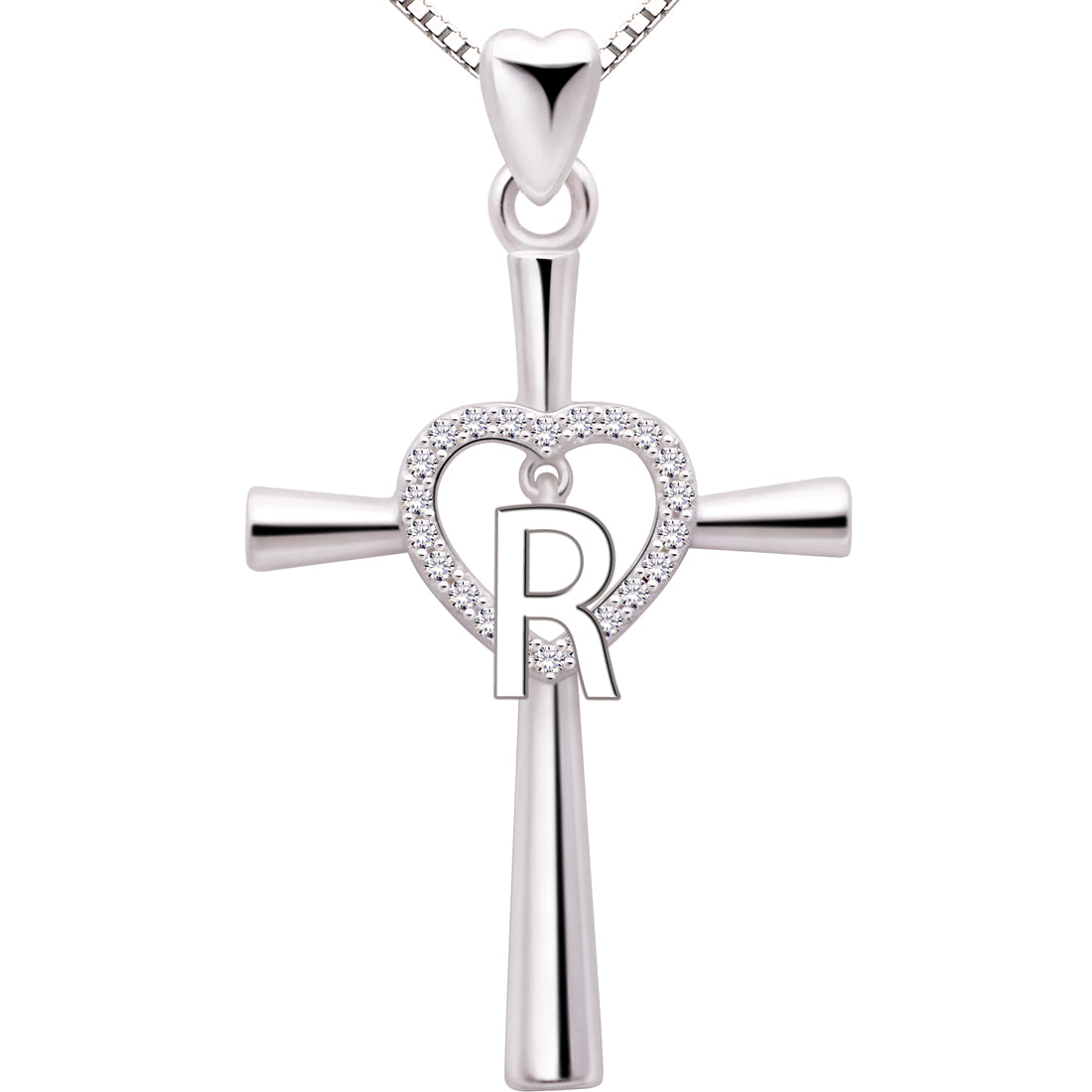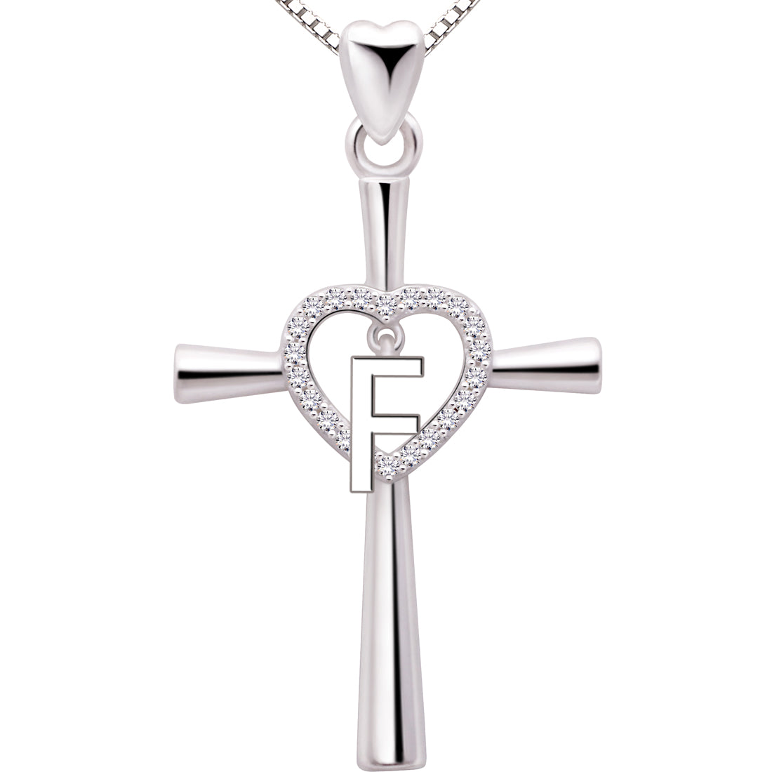 ALOV Jewelry Halskette mit Anhänger aus Sterlingsilber, Anfangsbuchstabe, Alphabet, Liebe, Herz, Kreuz, Zirkonia