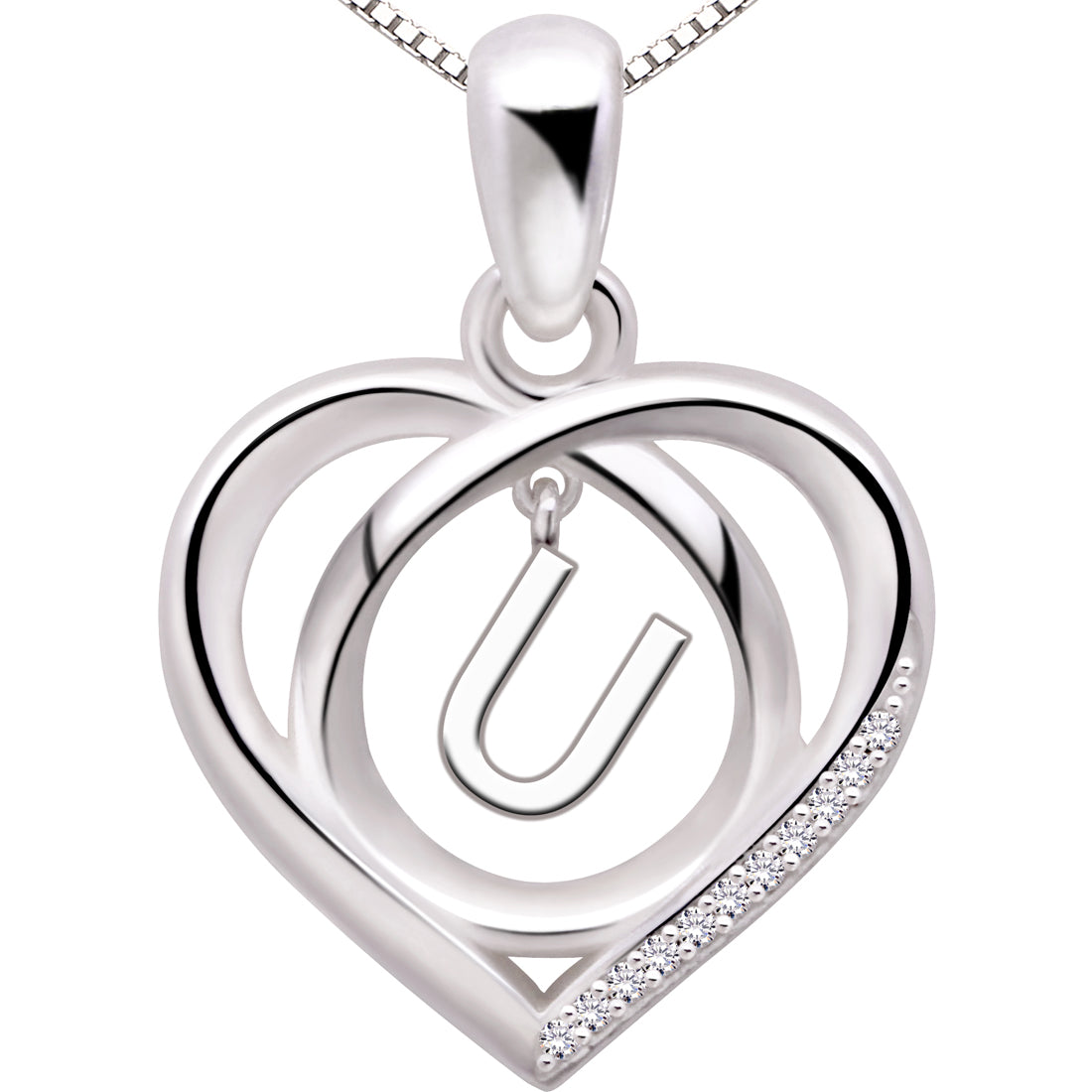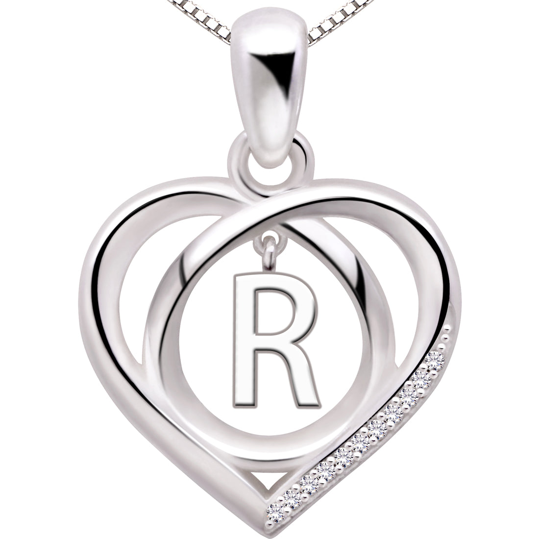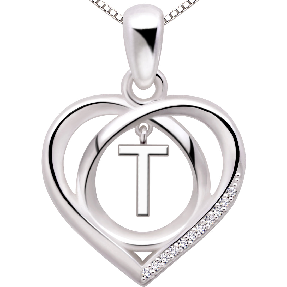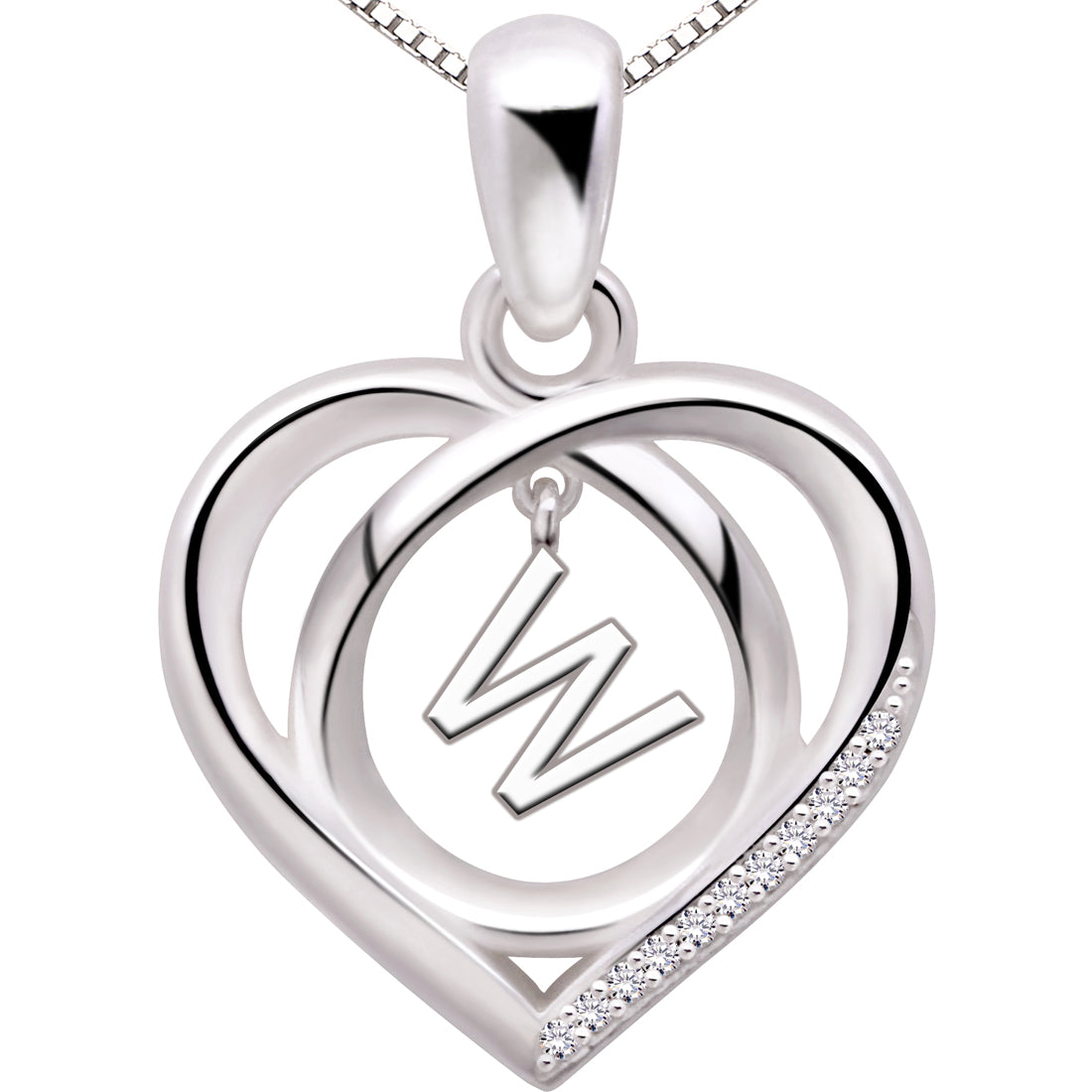 ALOV Jewelry Halskette mit Anhänger aus Sterlingsilber, Anfangsbuchstabe, Alphabet, Liebe, Herz, Zirkonia