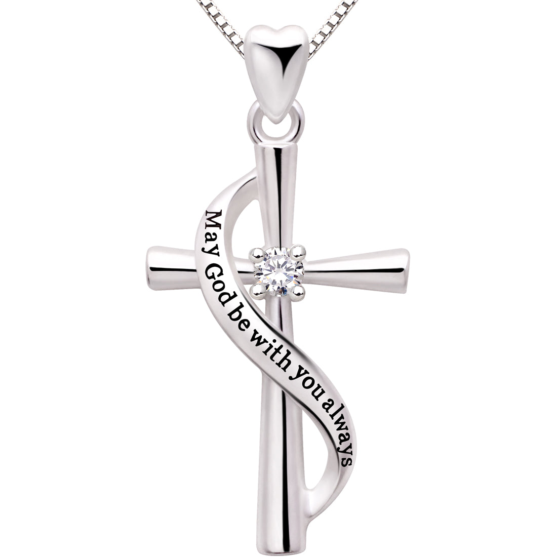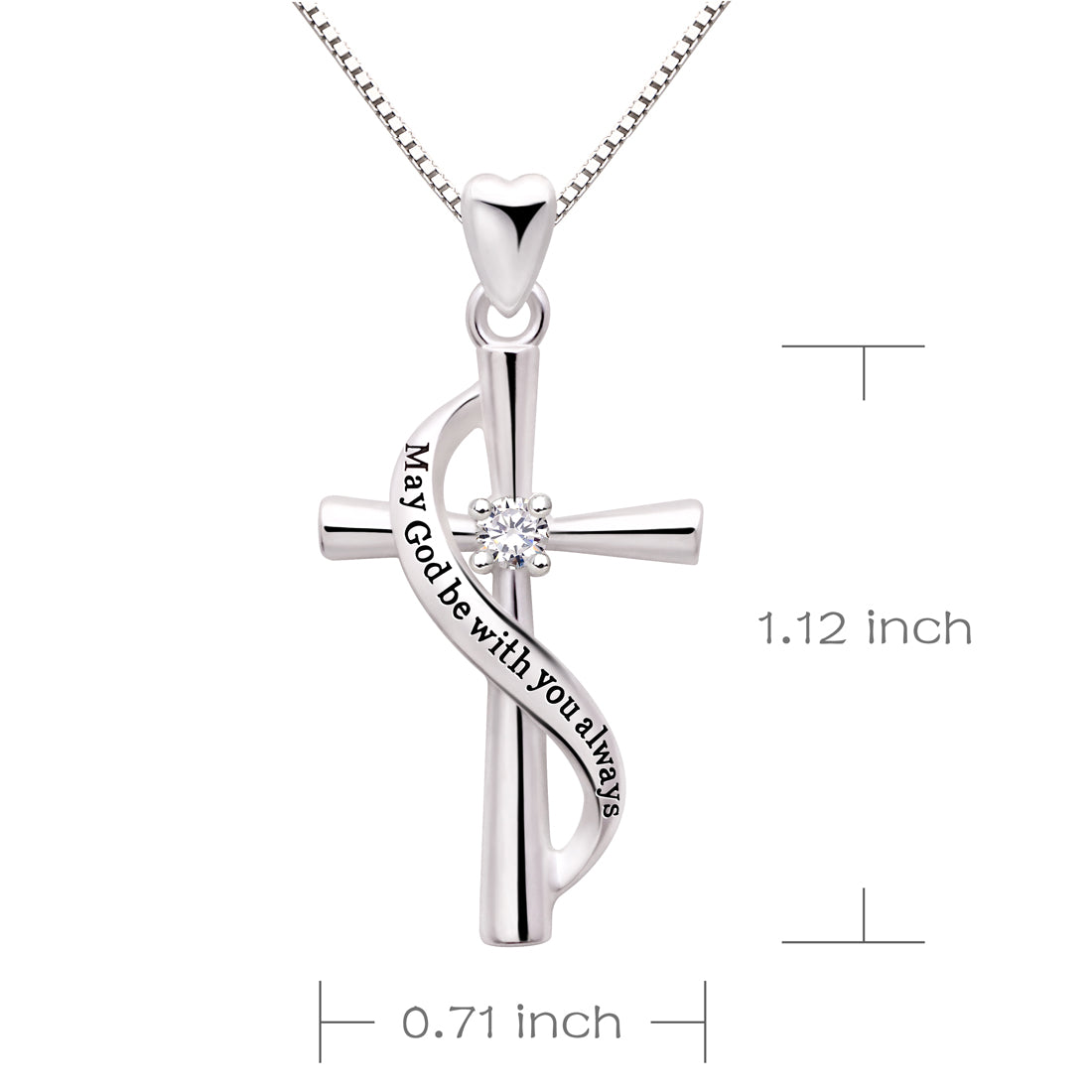 ALOV Jewelry Halskette mit Kreuzanhänger „May God be with You Always“ aus Sterlingsilber mit kubischem Zirkonia
