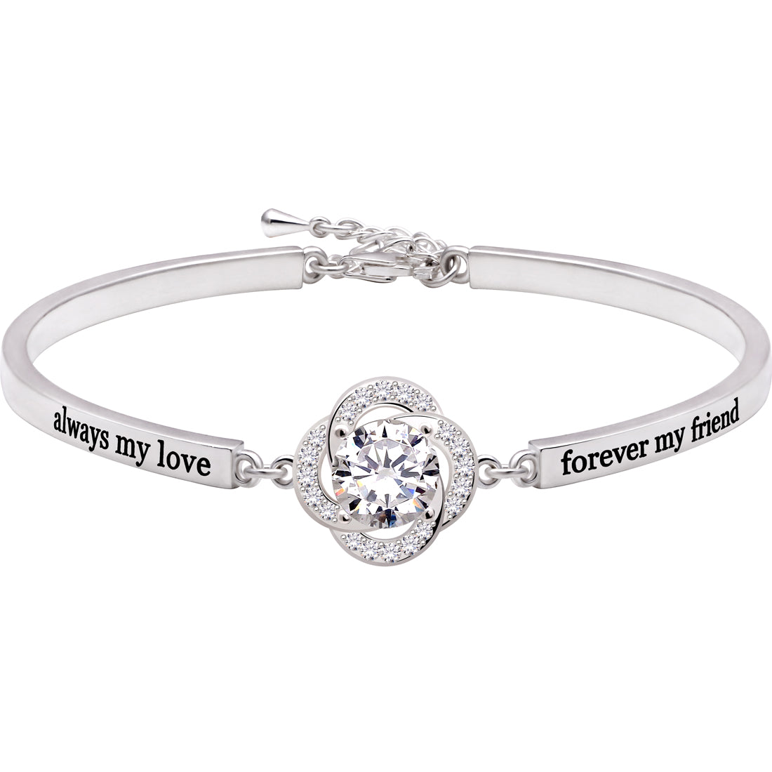 ALOV Jewelry Sterling Silver "always my love forever my friend" Cubic Zirconia Bracelet