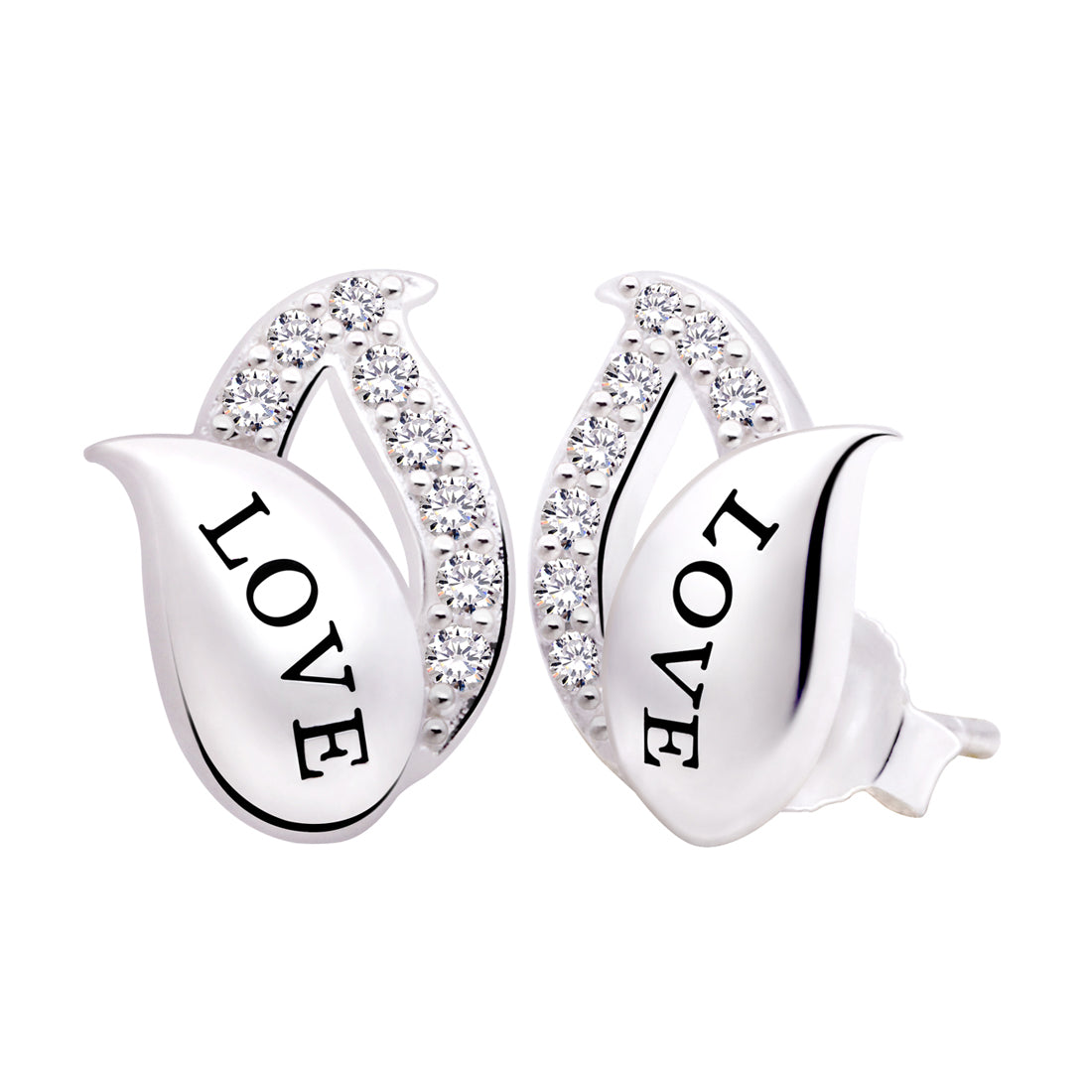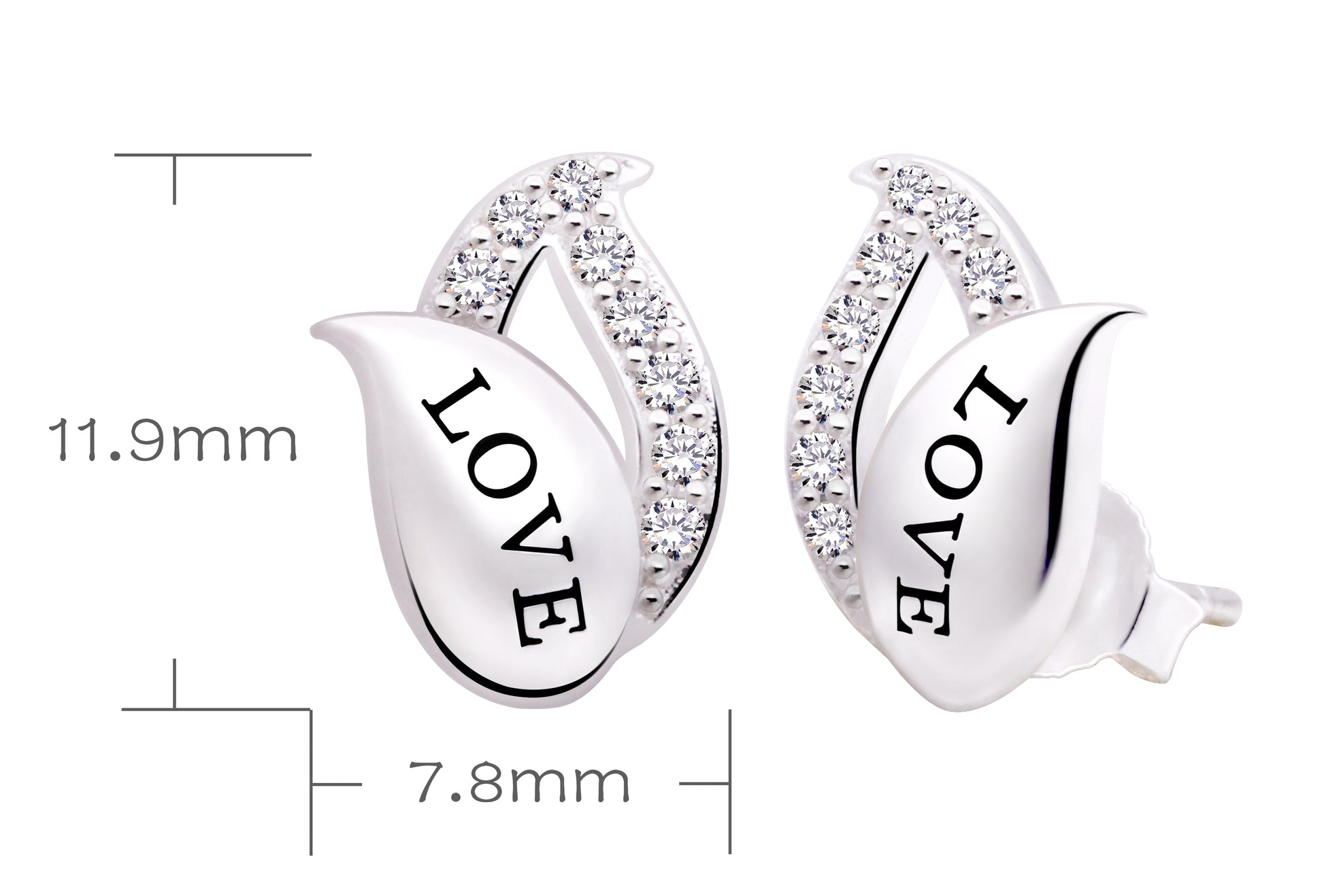 ALOV Jewelry Sterling Silver LOVE Cubic Zirconia Stud Earrings