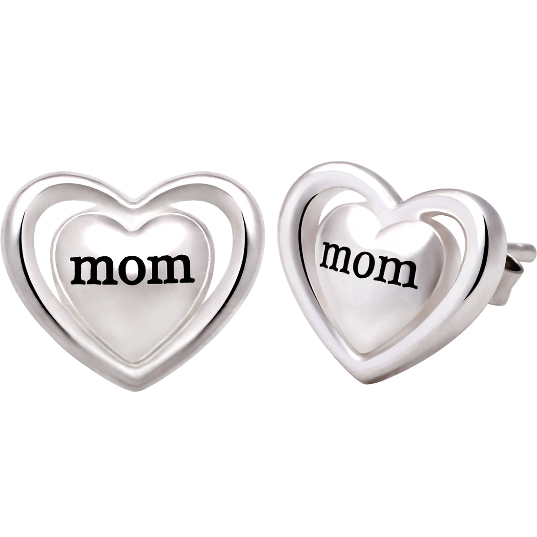 ALOV Jewelry Sterling Silver "mom" Love Heart Stud Earrings