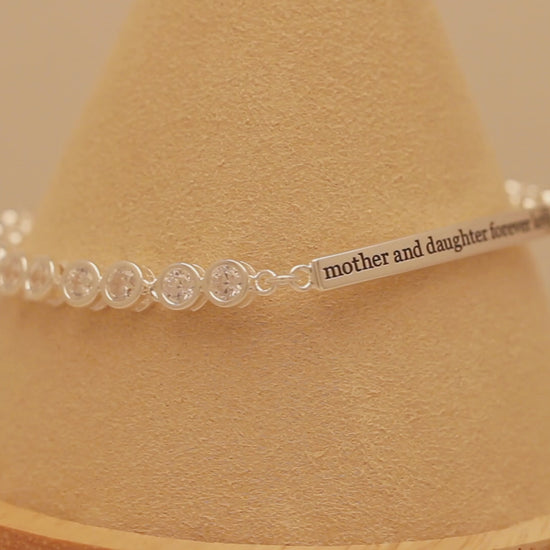 ALOV Jewelry Sterling Silver "mother and daughter forever love" Cubic Zirconia Bracelet