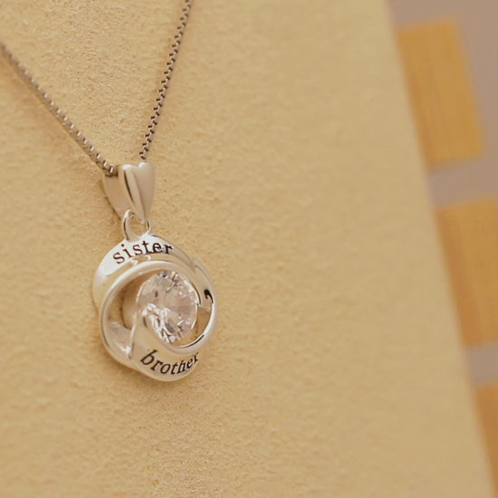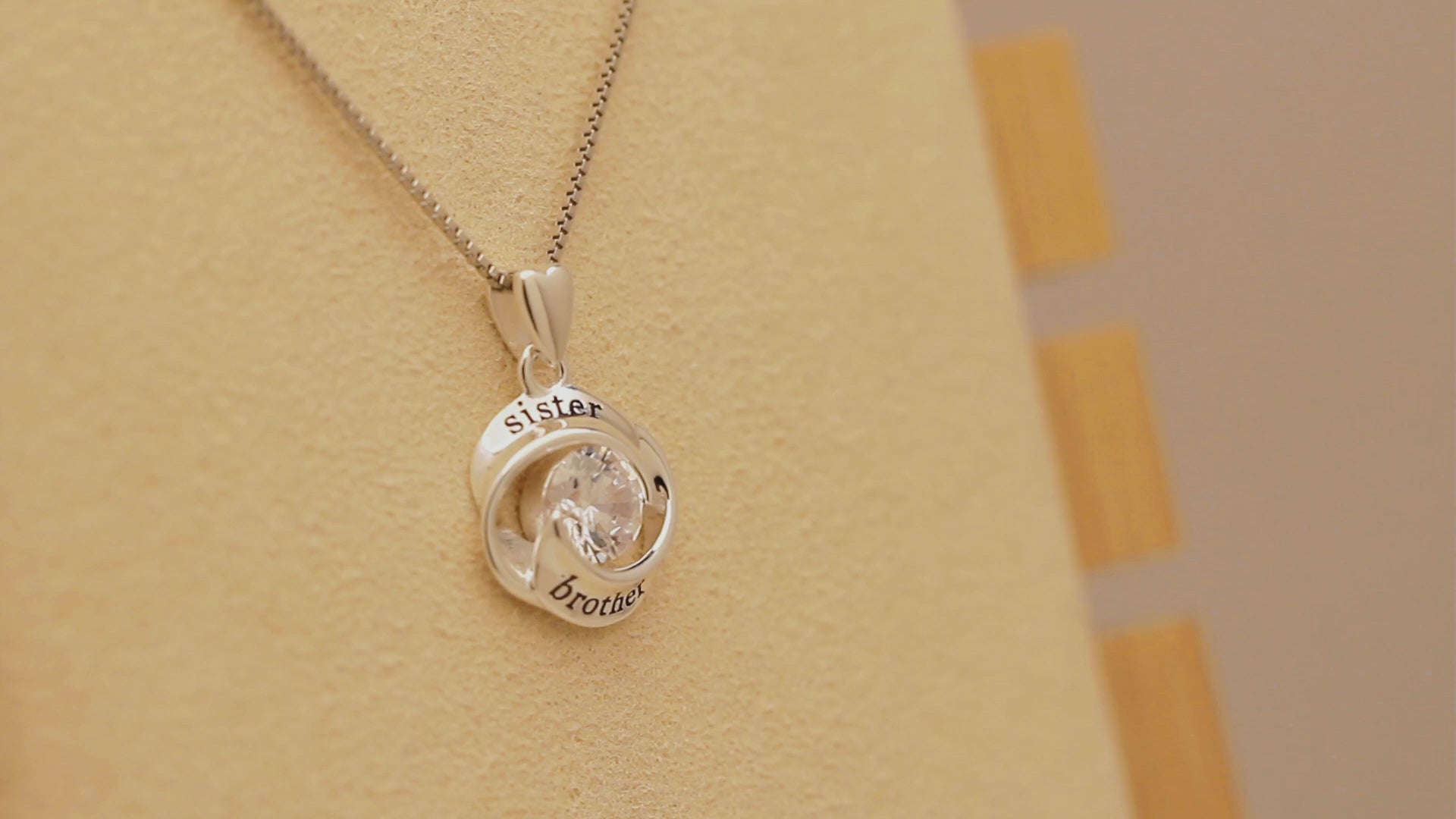 ALOV Jewelry Sterling Silver sister and brother Love Heart Cubic Zirconia Pendant Necklace
