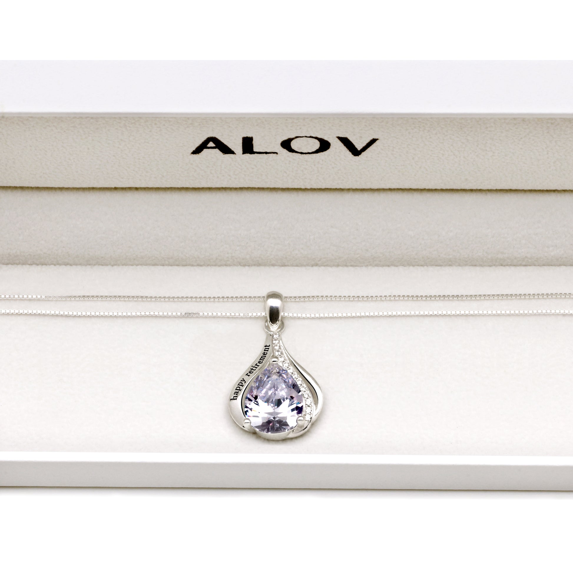 ALOV 珠宝纯银退休生活快乐方晶锆石吊坠项链