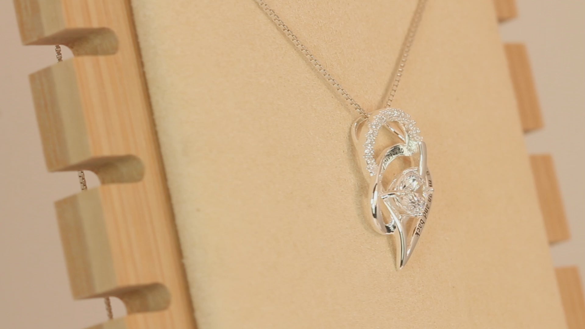 ALOV 珠宝纯银我爱你到月亮和背面爱心心方晶锆石吊坠项链